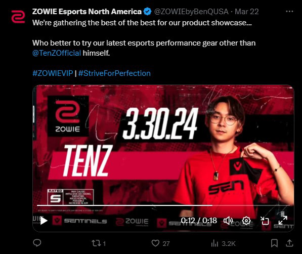 ZOWIE VIP Showcase: ZOWIE's first-ever solo event in North America. Support + brand integration + full player interactions from Sentinels. Private unveiling of new products with exclusive content for socials.